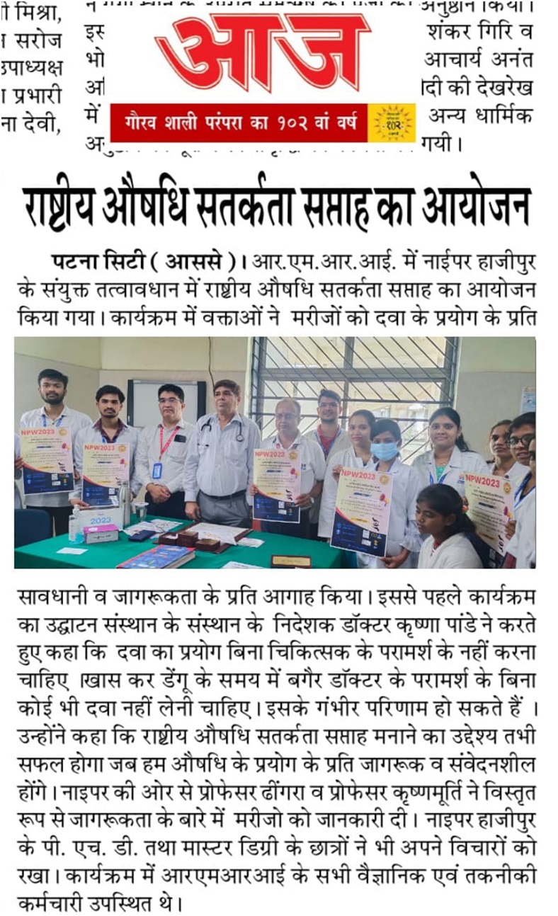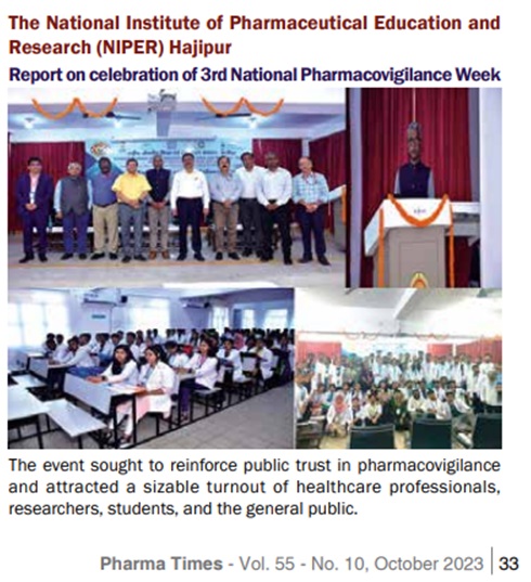 NIPER Hajipur AMC has actively participated in this program since Dec 2021 and has reported numerous ADRs until 2023. It is also among the top-five performing centres in India. NIPER Hajipur AMC is also a recognised training center for educational and training programs for Pharmacovigilance activities in Bihar State. NIPER Hajipur has conducted various training programs to create awareness of drug-related ADRs. Recently, it celebrated the 3rd National Pharmacovigilance Week from 17th to 23rd September 2023. The program aimed to boost public confidence in Pharmacovigilance for adverse drug reactions (ADRs) reporting in collaboration with IPC Ghaziabad and other collaborative clinical facilities. This training program was attended by more than 250 attendees.